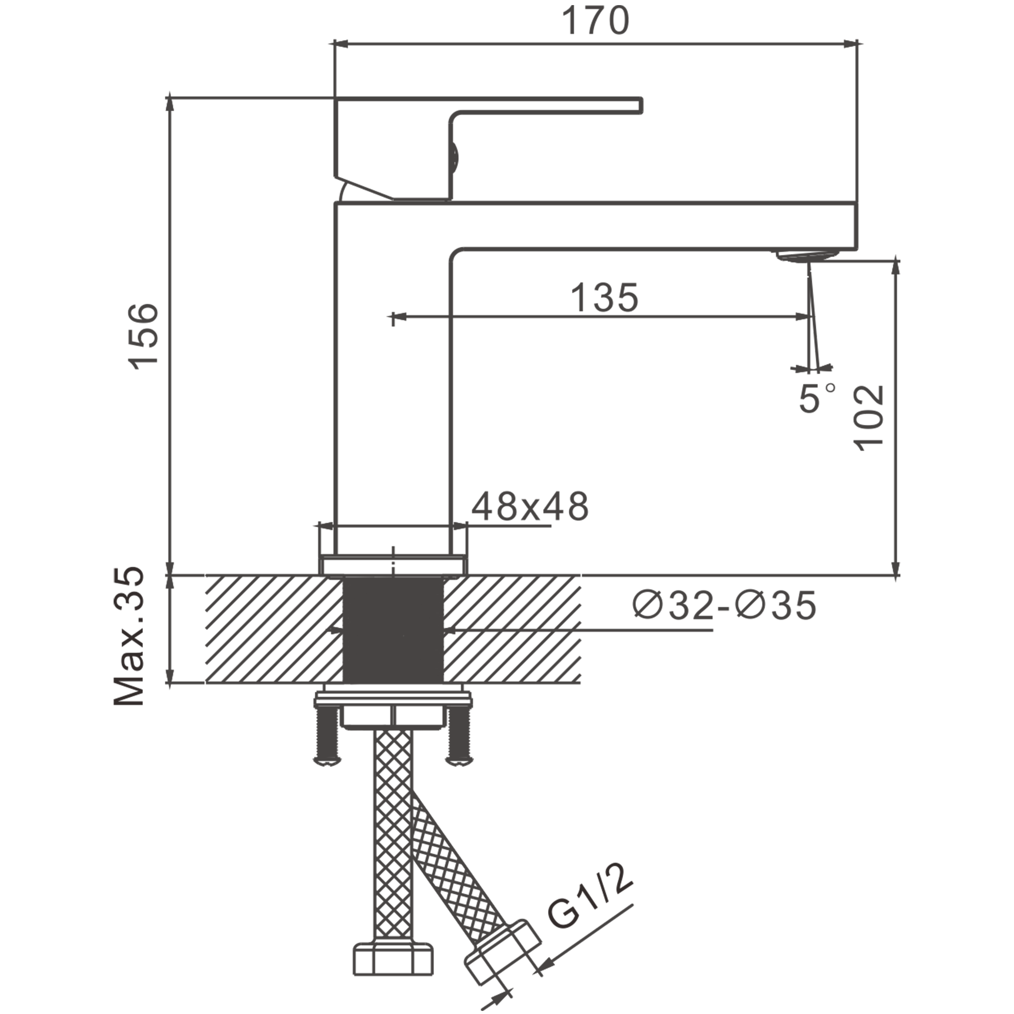 Смеситель для раковины, хром, нержавеющая сталь, B10812