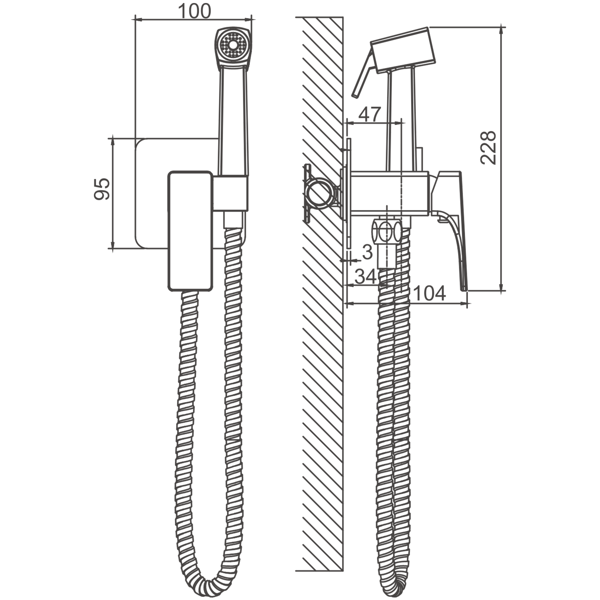 Смеситель гигиенический, с гигиенической лейкой, оружейная сталь, B55808-3