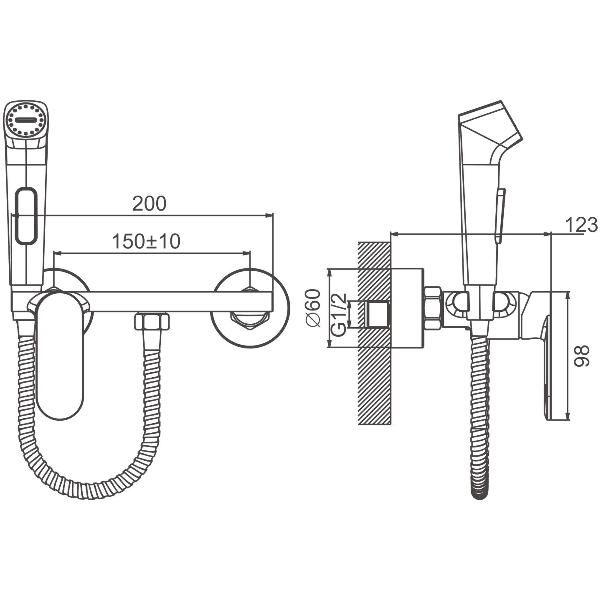 Смеситель гигиенический, с гигиенической лейкой, черный, B55808-7