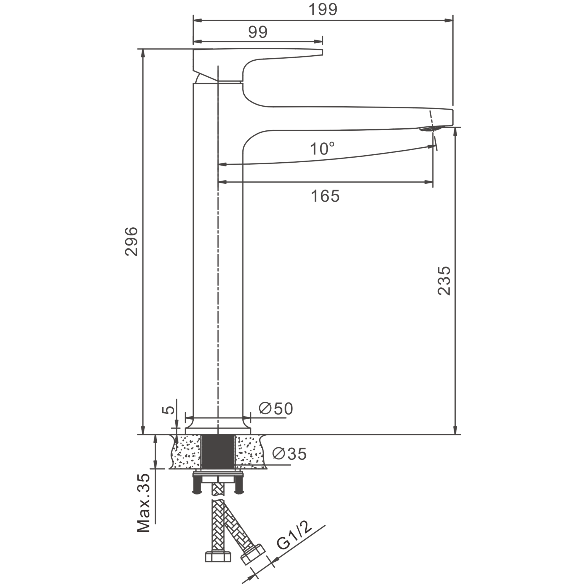 Смеситель для раковины-чаши, высокий, оружейная сталь, B11813-3