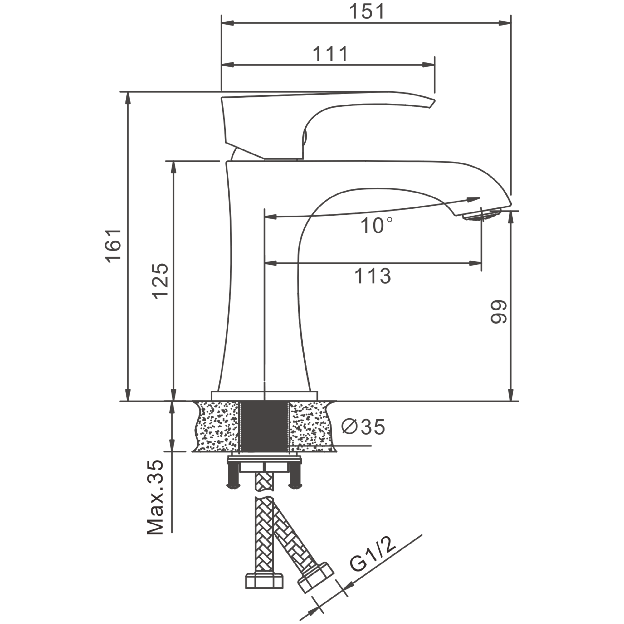 Смеситель для раковины, хром, нержавеющая сталь, B10812
