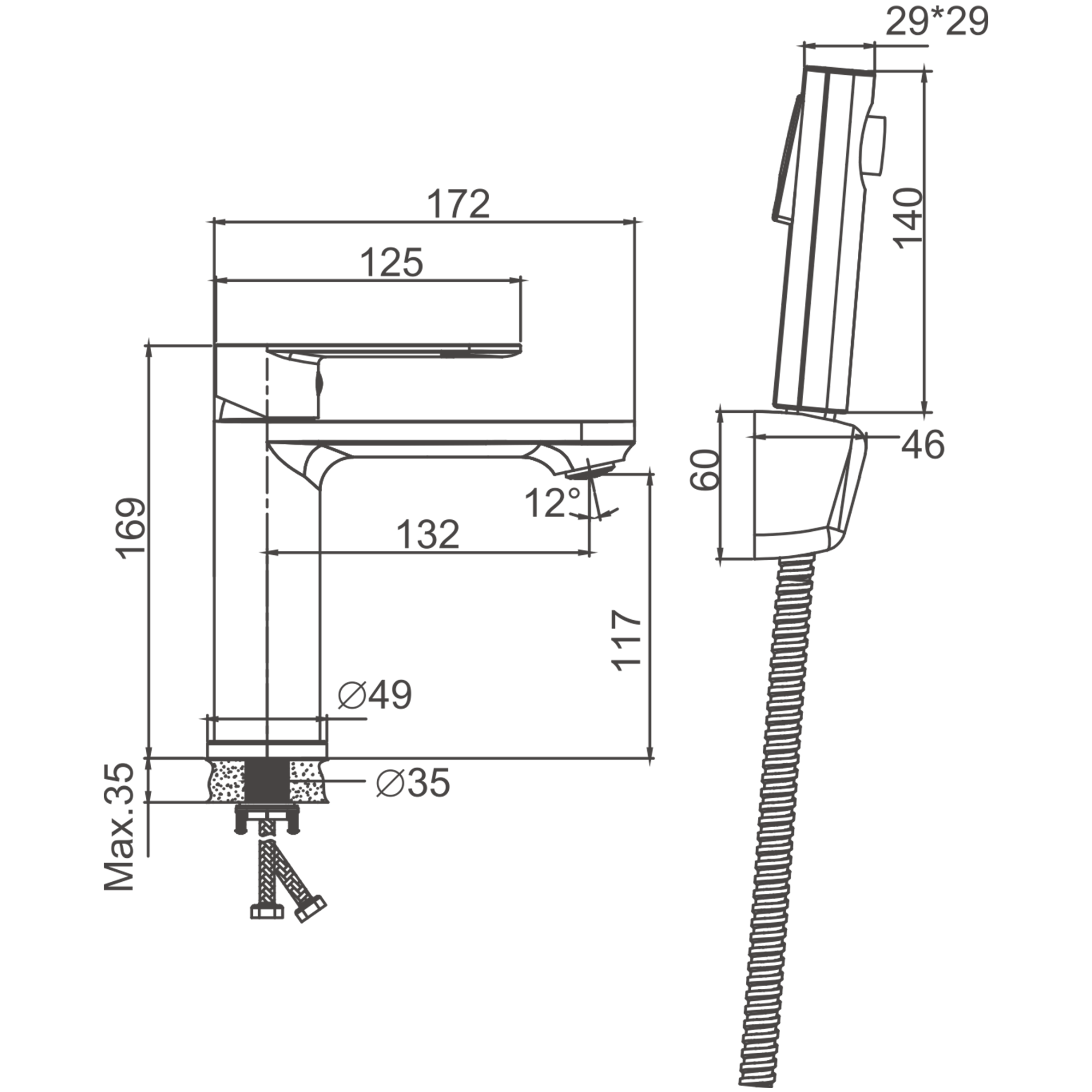 Смеситель для раковины, с гигиенической лейкой, оружейная сталь, B12713-3