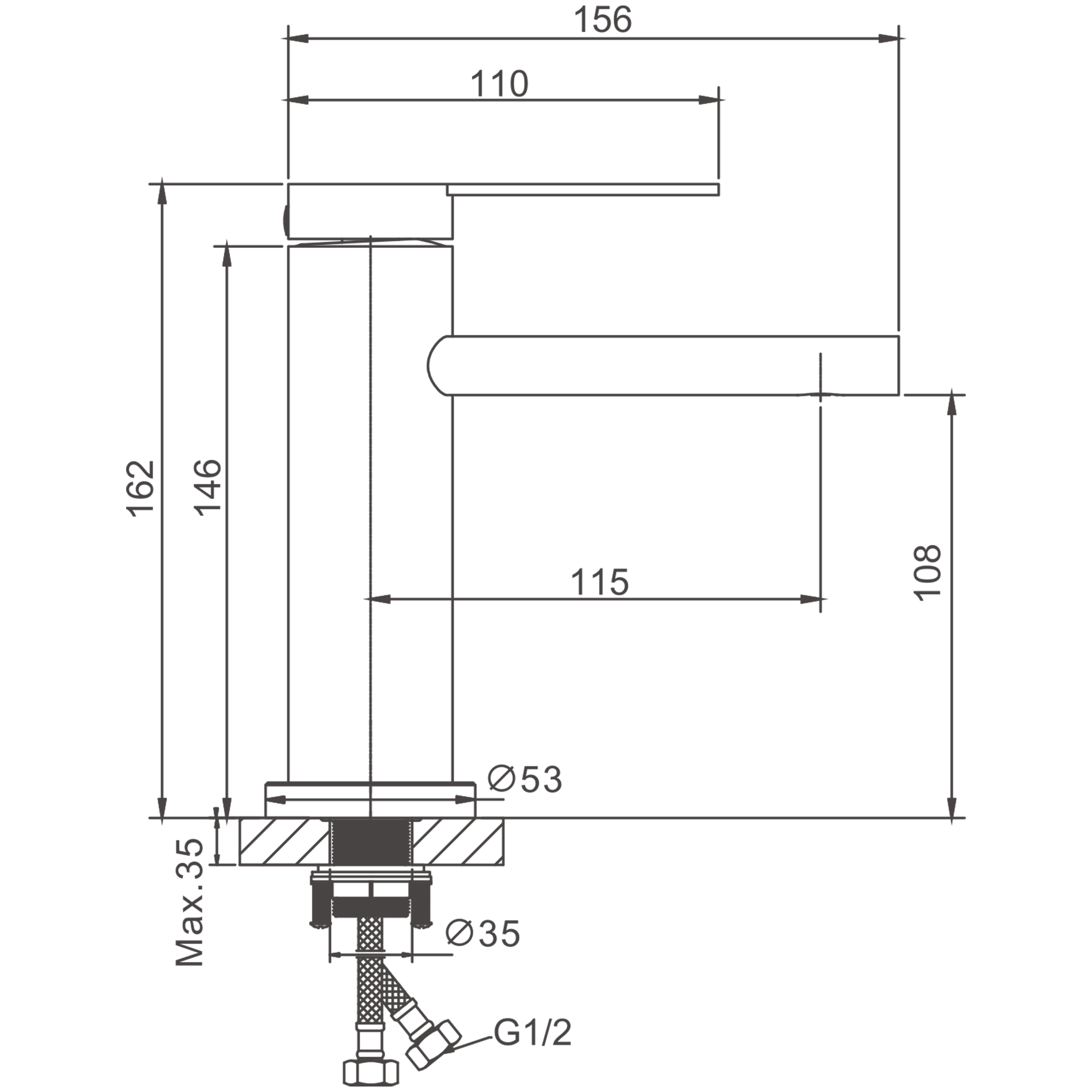 Смеситель для раковины, хром, нержавеющая сталь, B10812