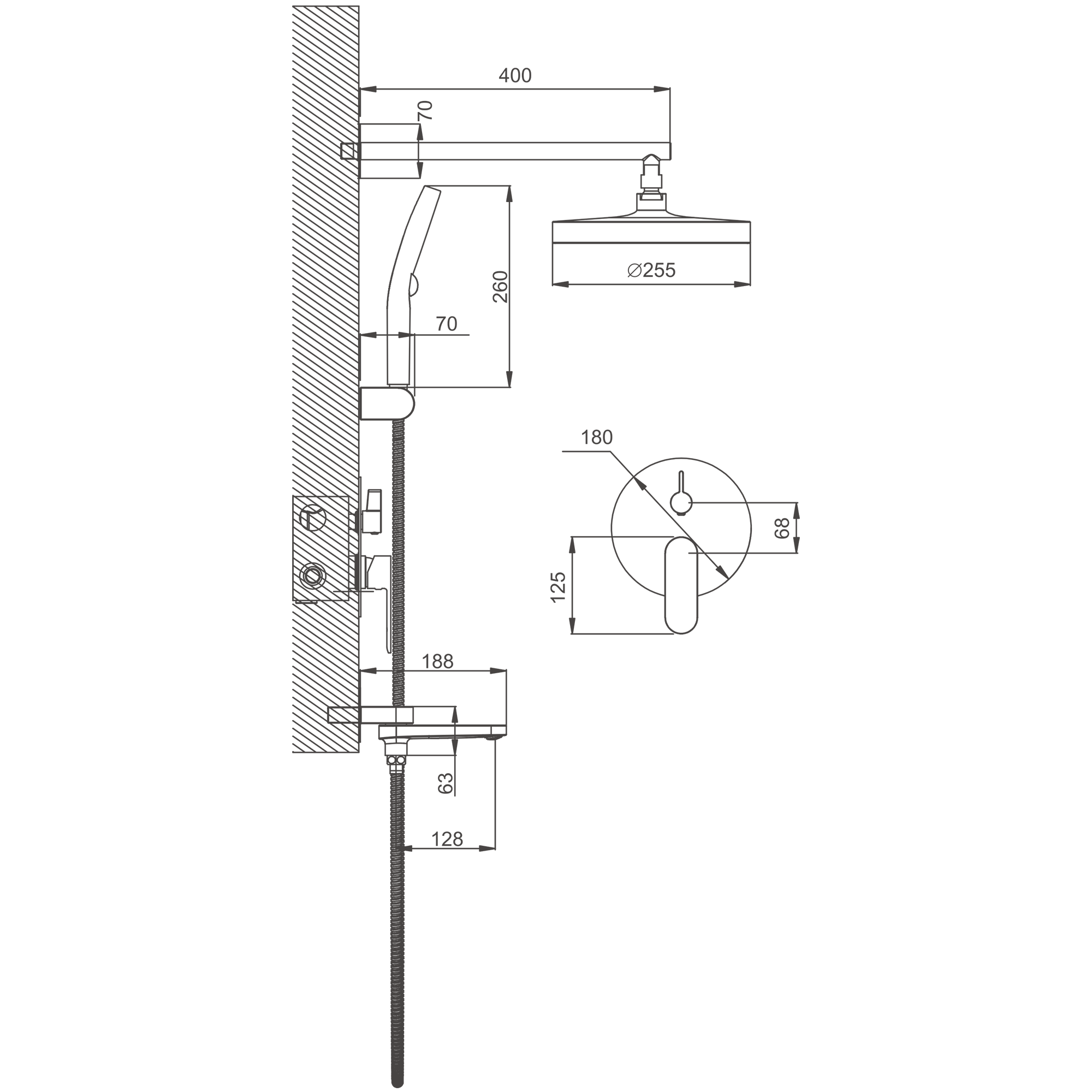 Душевая система, встраиваемая, оружейная сталь, B80713-3