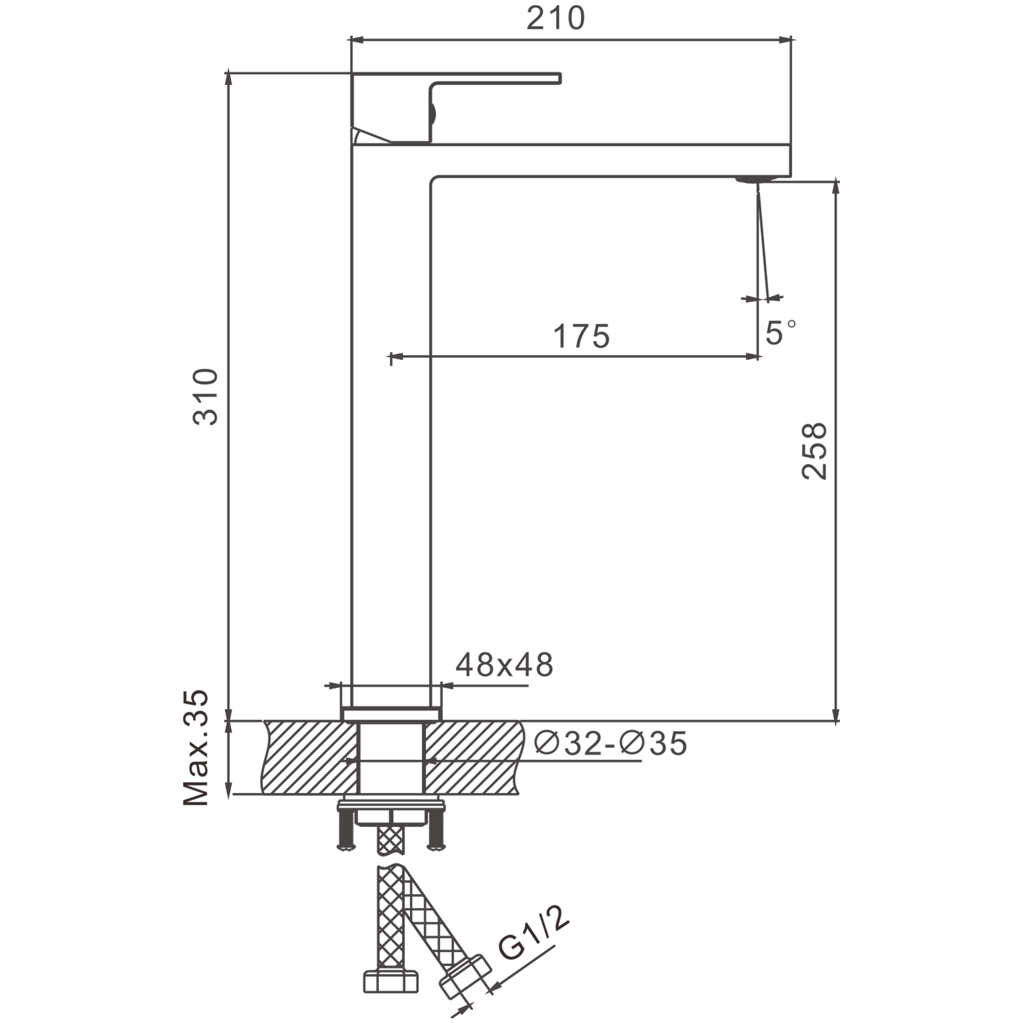 Смеситель для раковины-чаши, высокий, оружейная сталь, B11613-3