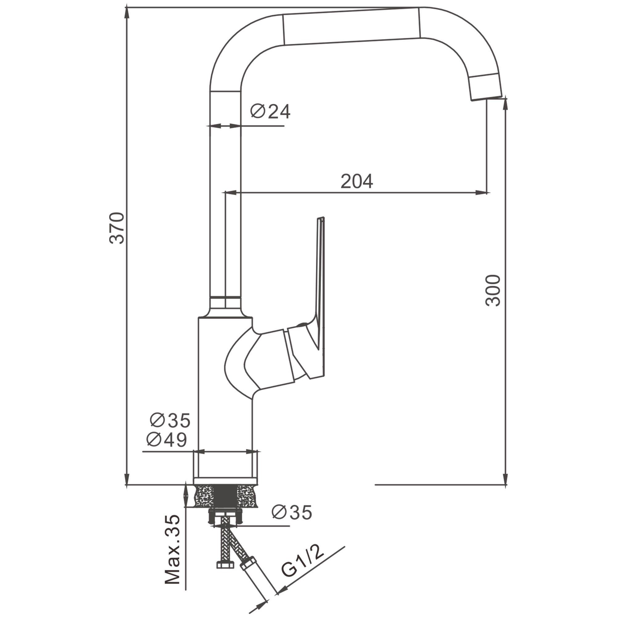 Смеситель для кухни, поворотный излив, оружейная сталь, B70613-3