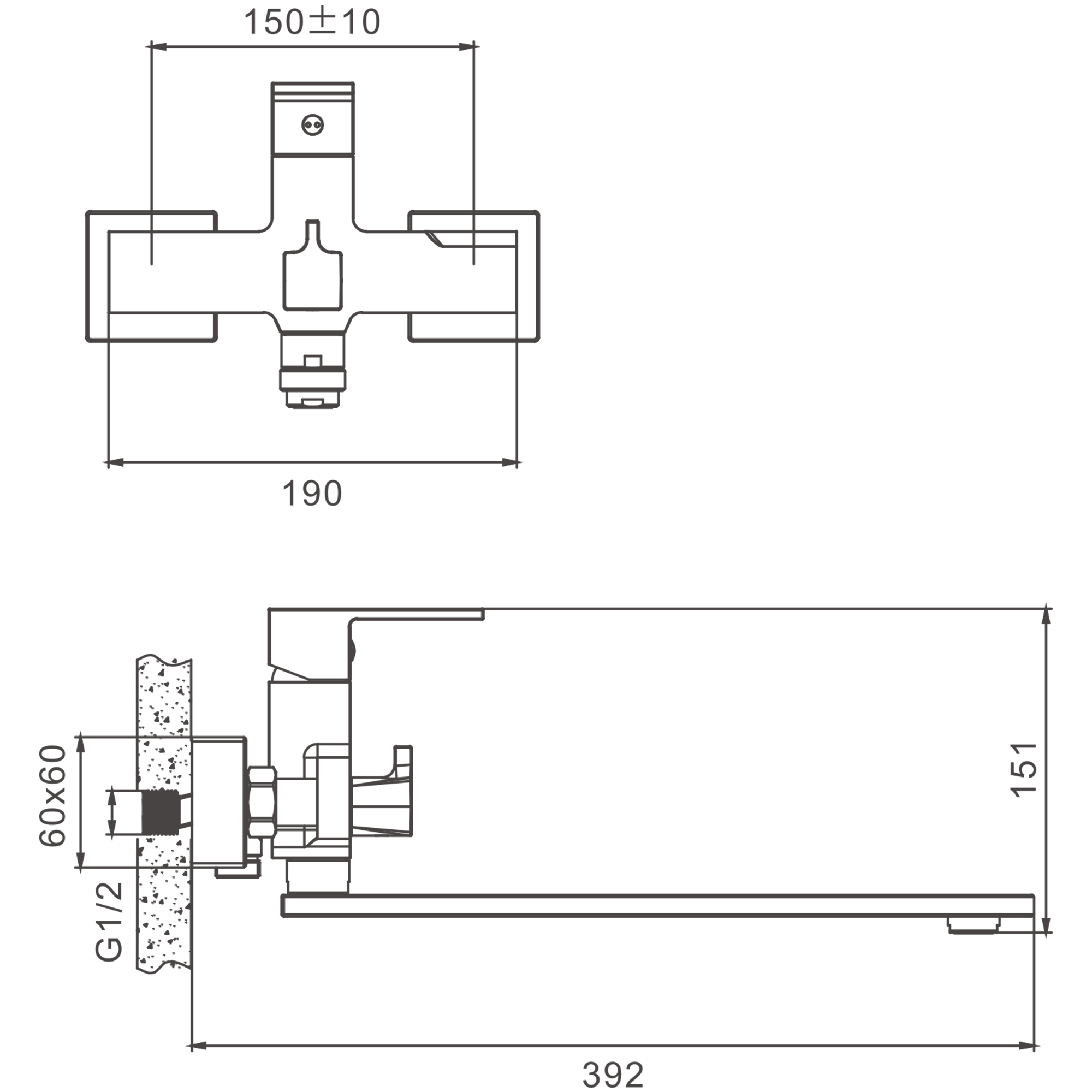 Смеситель для ванны, короткий излив, хром, латунь, B60612