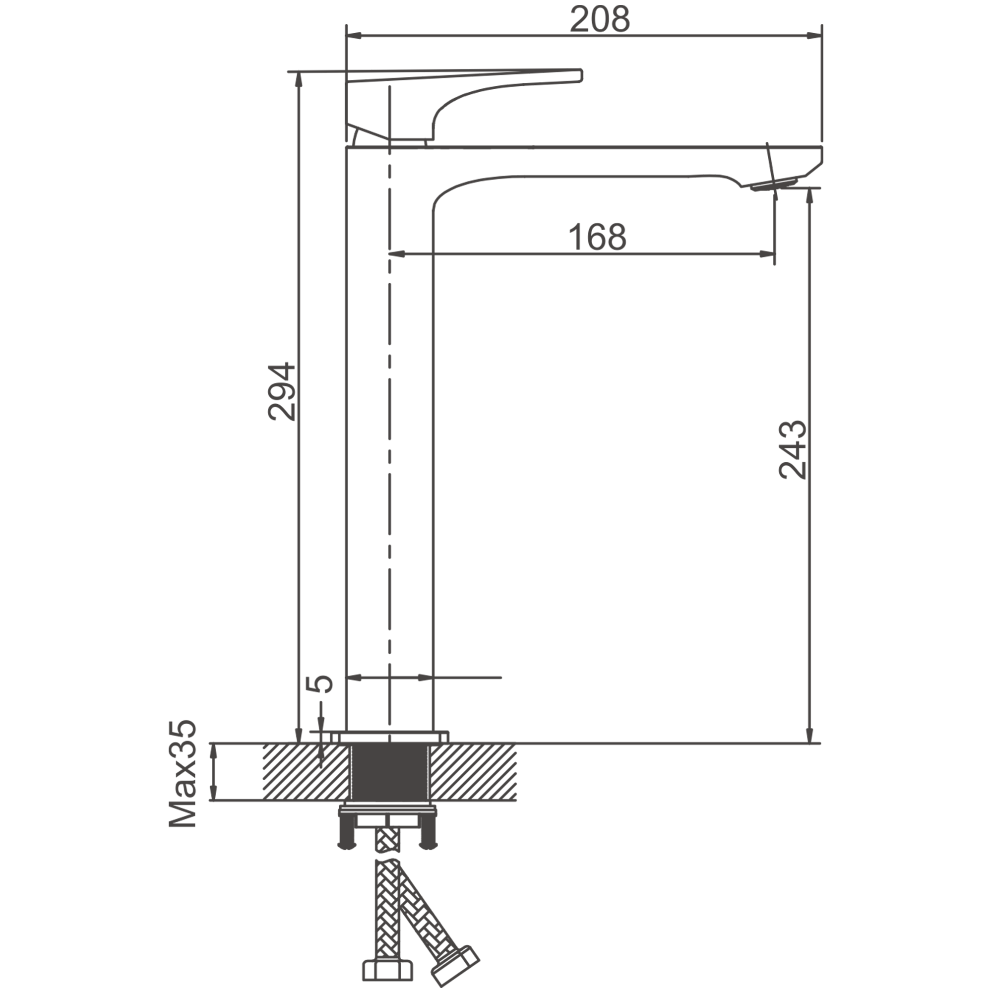 Смеситель для раковины-чаши, высокий, оружейная сталь, B11813-3