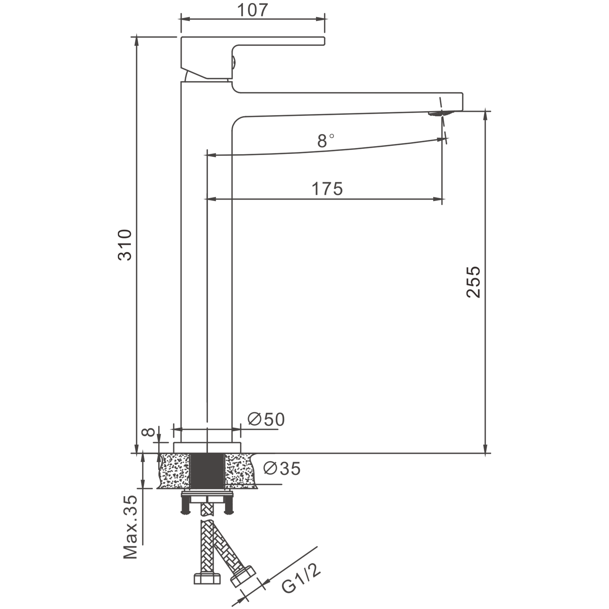 Смеситель для раковины-чаши, высокий, оружейная сталь, B11813-3