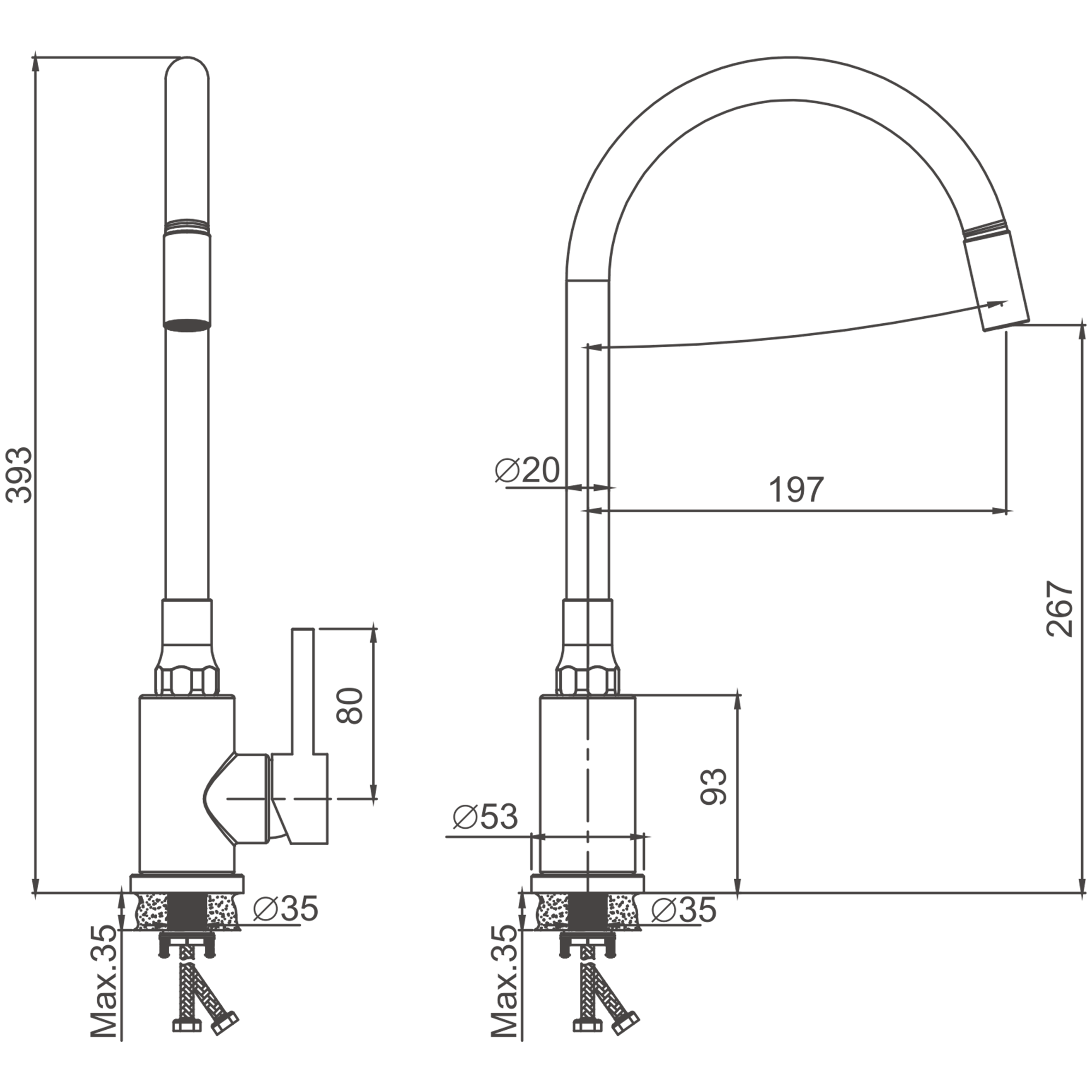Смеситель для кухни, гибкий излив, оружейная сталь, B73810-3